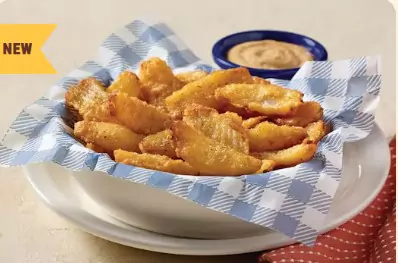 They’re lightly battered, crispy-fried sweet onion petals seasoned with garlic salt and served with Country Comeback Sauce.